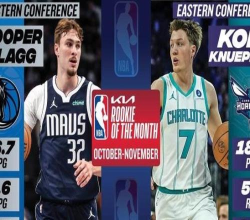 北京时间12月3日,NBA官方公布新赛季第一期月最佳新秀,独行侠状元库珀-弗拉格和黄蜂4号秀康-克努佩尔分别当选...