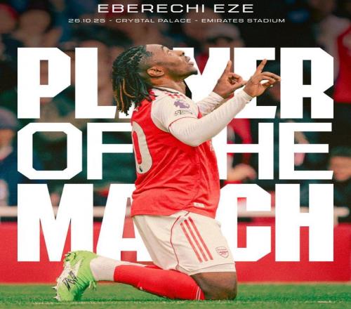 战旧主破门!阿森纳官方:埃泽当选对阵水晶宫最佳球员 雷速体育 2025-10-27 07:00:01 雷速体育10月27报道 稍早前结束的英超第9轮比赛中,阿森纳主场1-0击败水晶宫。比赛中,埃泽代表阿森纳首发出战,并打入全场唯一进球。赛后,阿森纳官方也宣布,埃泽当选本场比赛全场最佳球员。 埃泽旧主阿森纳水晶宫队英超冠军 上一篇: 能否延续维拉近30场先进球的英超主场比赛保持不败下一篇: 帕利尼亚:在埃弗顿主场零封他们很不容易,我们应该得到赞赏