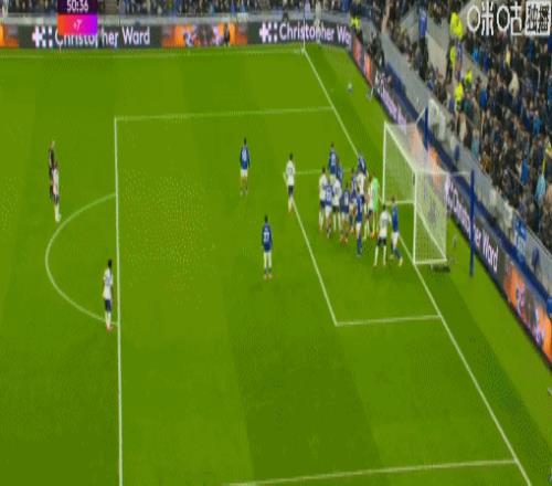 第45+6分钟,波罗开出角球,范德芬头球双响,热刺2-0埃弗顿