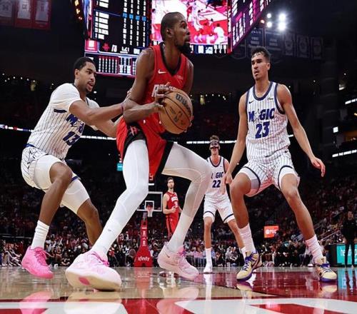 在此前的一场NBA常规赛中,主场作战的休斯顿火箭经过加时苦战后以117比113惊险战胜了奥兰多魔术。本场比赛后,拿下了4连胜的火箭的战绩提升到了9胜3负,继续排名西部第3位;而结束了3连胜的魔术的战绩则是下滑到了7胜7负,排名也是跌到了西部第11位。本场比赛后,火箭的锋线球星凯文-杜兰特(Kevin Durant)接受了记者的采访,他在采访中谈到了队友们的表现以及在休斯顿打球的感受。
