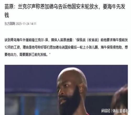兰克尔泽在今年夏天加盟青岛海牛,12轮联赛打进7球并送出2次助攻,为海牛队保级成功立下了汗马功劳。但这位喀麦隆前锋的人品却非常糟糕,近期海牛队的翻译曝光了兰克尔泽多次向队友借钱,并辱骂青岛球迷的消息。另外,他还多次向俱乐部要求预支工资、额外奖金,并因没有满足个人要求而拒绝参加训练。