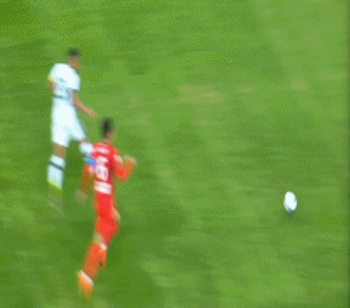 半场补时第4分钟,法比奥转身打门蹭到马亚手上,高亨进观看VAR后给了点球。