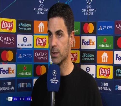率队在欧冠联赛阶段第6轮客场3-0完胜布鲁日之后,阿森纳主教练阿尔特塔接受了来自TNT体育的采访。